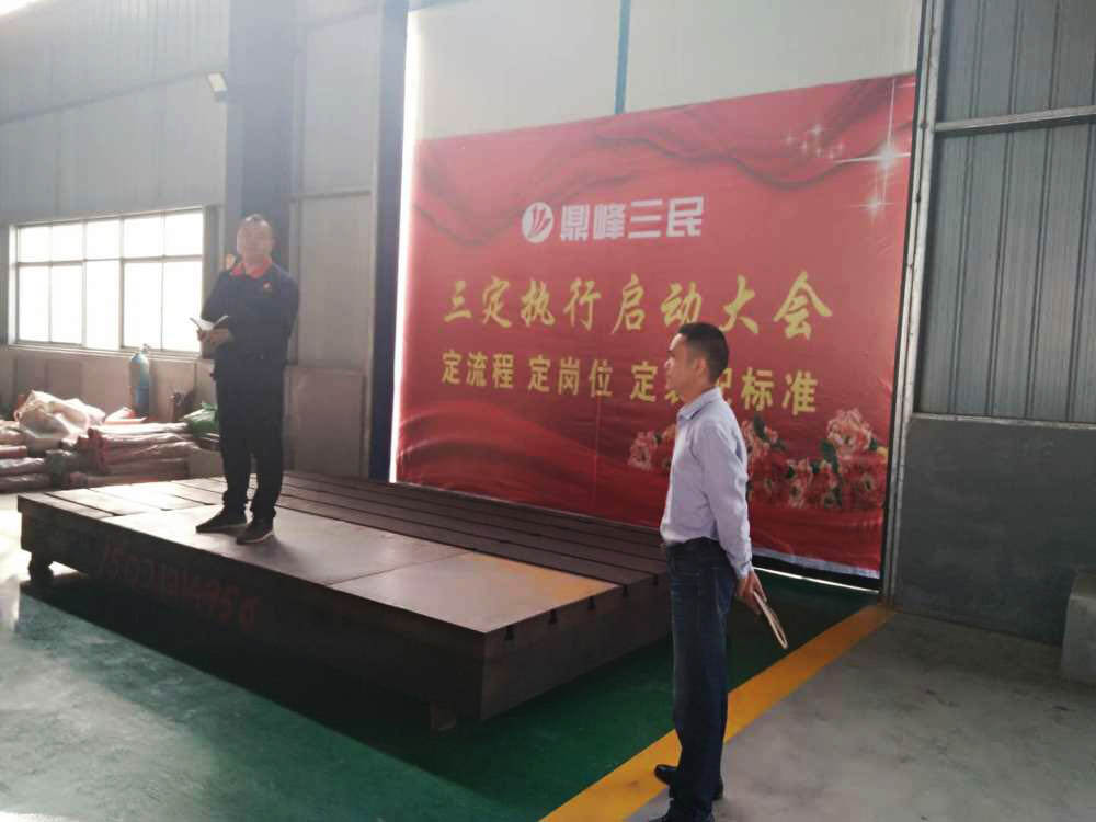 大會(huì)伊始,李總首先發(fā)表致辭,宣布三民重科“三定”正式啟動(dòng)執(zhí)行,并對(duì)“三定”內(nèi)容進(jìn)行了宣導(dǎo)?!岸鞒獭⒍◢徫?、定裝配標(biāo)準(zhǔn)”即“三定”政策試執(zhí)行一個(gè)月以來,切實(shí)有效增強(qiáng)了全員的使命感和責(zé)任感,作為企業(yè)管理基礎(chǔ)性工作中重要的一環(huán),起到了積極作用。李總要求,各職能部門要繼續(xù)嚴(yán)格貫徹執(zhí)行“三定”政策,在原有基礎(chǔ)上發(fā)現(xiàn)問題,改進(jìn)不足,確保高質(zhì)高效的完成生產(chǎn)經(jīng)營(yíng)工作。
